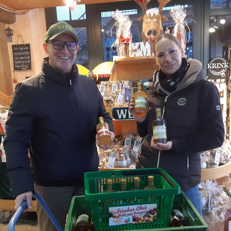 Wir freuen uns, dass wir mit unserem Tönisvorster Apfelschnaps jetzt endlich die lange erwartete Brücke zwischen den Ortsteilen Vorst und St. Tönis bauen können: Tina Fliegen vom Markt 4 in Vorst hat unsere Produkte in ihr Sortiment aufgenommen. Neben Apfelbrand und Apfellikör steht dort auch unser Winterzunder im Regal.